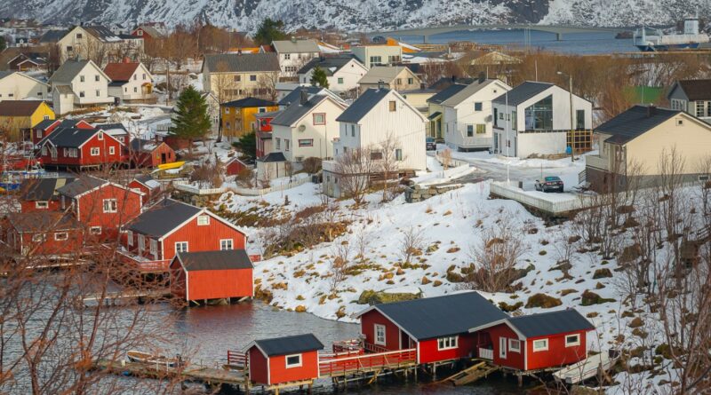 - Lofoten Islands – These islands are world-famous for their dramatic scenery, fishing villages, and Arctic charm. Winter in Lofoten means snow-covered peaks, frozen beaches, and cozy red cabins known as rorbuer. Travelers can enjoy activities like snowshoeing, kayaking through icy waters, or photographing the Aurora Borealis dancing over the ocean. Villages such as Reine, Svolvaer, and Henningsvaer are must-see highlights.